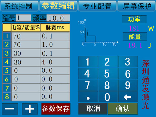 5、設備具有波形調用功能,可以根據上位機的指令,在不同工位使用不一樣的激光能量,適合加工復雜工況。