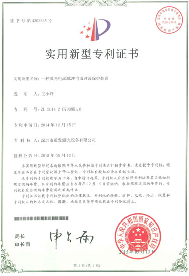 電源脈沖電流過流保護裝置和光纖激光激光焊接機快速時間分光裝置專利
